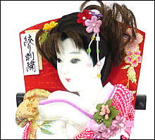 ピンクの鹿の子絞りと白地の金襴に刺繍をほどこした可愛い振袖に現代風の髪型の本格派押絵羽子板!コンパクトサイズながら存在感大です! サイズ 間口16.5×奥行16×高さ42.5(cm)