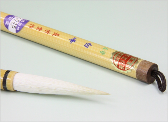 羊毛と馬尾脇毛の兼毫筆。硬すぎず、そして柔らかすぎずという表現がぴったりの兼毫筆です。墨含みの良い羊毛と、弾力に富む馬尾脇毛を使って作られています。半紙4文字から6文字に最適な大きさです。初心者の方でも扱いやすいです。