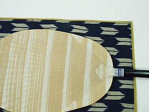 無造作に描かれた渋の線模様がこの団扇の特徴です。1本1本柄が微妙に異なっていて特別な感じを与えてくれます。線模様の部分に柿渋を気持ち濃いめに塗ってあります。