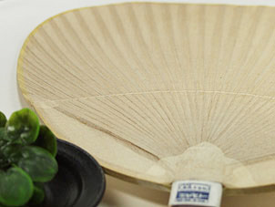大きさとシンプルさが魅力の渋団扇です。うっすらと見える竹骨のラインはとても綺麗です。使い勝手も抜群にいいですよ。渋は全体に薄く塗ってあります。