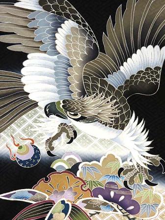 背中に凛々しい鷹が描かれた、京友禅(型染め)の男児用初着(産着)です。柄の縁取りはの一部は立体感のある盛金加工が施されています。お宮参りに正絹の上質な初着(産着)はいかがですか? ・サイズ:身丈約98cm 裄丈約46cm 袖丈約56cm