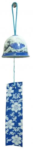 有田焼の富士山風鈴。北斎の描いた傑作、大胆な浪の裏に雄大な富士山が描かれた「富嶽三十六景・神奈川沖浪裏」が風鈴になりました。厚手の磁器で割れにくく、遠方への贈り物にも心配ありません。 ※本体寸法・全長38cm・鈴幅75mm・鈴高さ60mm ※箱寸法・幅80mm・奥行80mm・高さ65mm