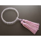 天然石本水晶128面カット切子8ミリ玉・一輪仕様の数珠(念珠)。親玉・ボサ・二天玉も本水晶128面切子の共仕立て。房は本絹の藤房 白色入り。箱入り。