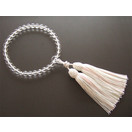 天然石本水晶128面カット切子8ミリ玉・一輪仕様の数珠(念珠)。親玉・ボサ・二天玉も本水晶128面切子の共仕立て。房は本絹の白房 桃色入り。箱入り。