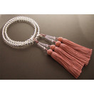 天然石本水晶丸玉・二輪仕様の数珠(念珠)。親玉・天玉も本水晶仕立て。房は本絹の灰桜色。箱入り。