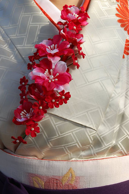 レッド。とっても珍しい逸品!! ありそうで無かった襟飾り。 これを襟元に簡単差込めば、寂しかった襟元がこんなに華やかに(=´∀`) 襟元に咲くお花畑のできあがり。 また、帯に差込めば帯飾りにもなる2WAYです。使い方はあなた次第。 愛らしいお着物に合わせ下さい。 サイズ 全長 約22? 差込み部 約6?