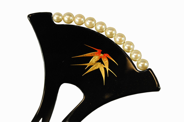 すっと、一挿し女を上げる。おめでたい晴れやかな席にぴったりな、格調高いかんざしです。 昔ながらの蒔絵を施した趣きあるかんざしは季節を選ず、古典的で優雅な印象。 着物から浴衣まで和の装いをより一層引き立ててくれます! 一つ一つ職人さんが絵柄を施した匠の逸品です。 サイズ 全長13cm 幅9cm(普通サイズ)