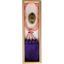 天然石深海さんご丸玉・二輪仕様の数珠(念珠)。親玉・天玉も深海サンゴ仕立て。房は本絹の紫色。箱入り。