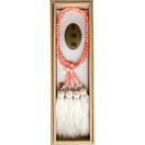 天然石深海さんご丸玉・二輪仕様の数珠(念珠)。親玉・天玉も深海サンゴ仕立て。房は本絹の白色。箱入り。