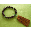 紫檀艶消し仕上げ22玉・一輪仕様の数珠(念珠)。親玉・ボサ・天玉はアベンチュリン仕立て。房は本絹の浜梨色。箱入り。