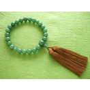 天然石アベンチュリン22玉・一輪仕様の数珠(念珠)。親玉・天玉もアベンチリン仕立て。房は本絹の浜梨色。箱入り。