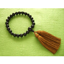 天然石ブラックオニッキス22玉・一輪仕様の数珠(念珠)。親玉・天玉もブラックオニキス仕立て。房は本絹の浜梨色。箱入り。
