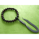 素挽き艶消し縞黒丹22玉・一輪仕様の数珠(念珠)。親玉・天玉は青虎目仕立て。房は紺青と銀鼠の本絹6本組紐。箱入り。