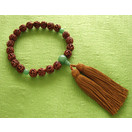 羅漢彫り21玉・一輪仕様の数珠(念珠)。親玉・天玉はアベンチリン仕立て。房は本絹の浜梨色。箱入り。