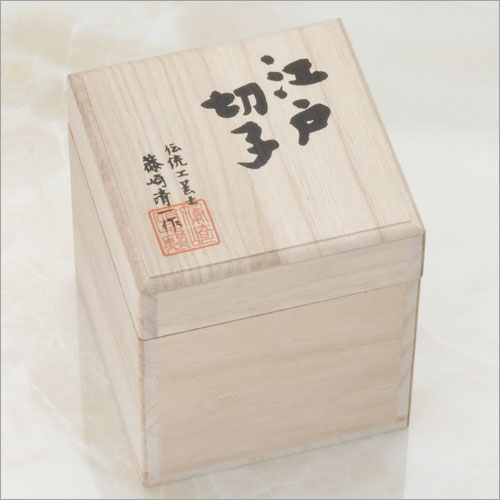 日本の伝統工芸品、江戸切子。伝統工芸士、名工篠崎清一氏の逸品です。専用木箱にお入れしてお届けします。■サイズ:65×55mm
