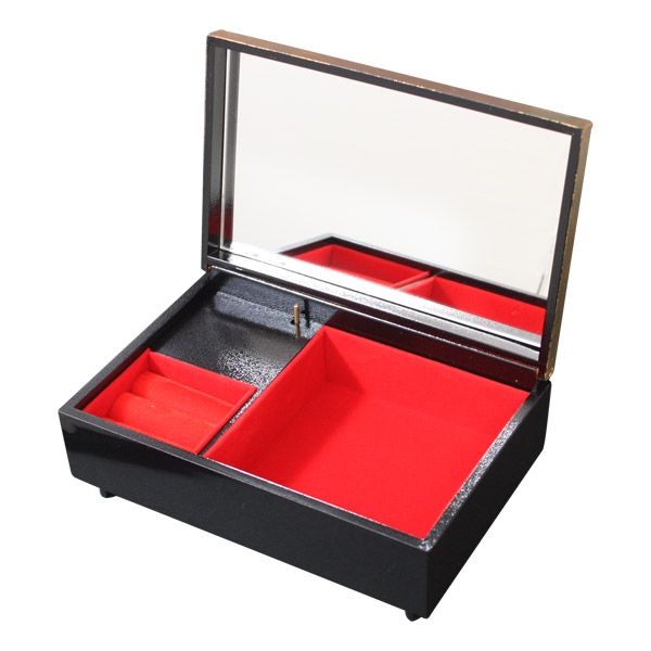 優雅な扇をモチーフにした上品で華やかなオルゴール付宝石箱です。曲目は「黒い瞳のナタリー」。気軽にお使い頂けるABS樹脂素材の金箔製品はお求めやすい価格になっておりますが、細部まで丁寧に作られた、とても綺麗な商品です。■サイズ:195×128×70mm ■素材:ABS樹脂/金箔・ラッカー塗装 ■重さ:670グラム(箱込) ■化粧箱入り 箱寸140×208×80mm