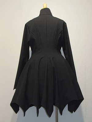 しなやかでストレッチが効いた美しい光沢感のある素材を使用したワンピースです。ランダムに尖った裾が印象的です。クレルワンピース[BZ6246]よりも、丈が短いタイプになります。フロント部分が、カギホック仕立てになっていて、その間をスナップボタンで留める仕様になっています。サイドポケットがさりげなく施されています。引き締まったウエストと、裾に向かって贅沢に広がるデザインで、美しいシルエットを表現しています。※画像ではスカート部分を膨らませる為に、パニエをはかせています。