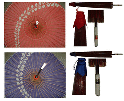 番傘より細身の色鮮やかな傘を総称して蛇の目傘とよびます。色鮮やかで色数も多く、和服を着た女性に良く似合います サイズ 直径100cm 長さ70cm 重さ450g 骨/心棒/ 手元 親骨(竹製)32本から36本 53cm 心棒(木製/黒塗り) 手元ビニール巻き有り 紙/糸がけ 和紙 飾り糸(赤)1本掛け