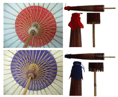 祭り提灯の上にさす為に、特別に作られたものです。 小振りですが、普段でも使って頂けます。 サイズ 直径90cm 長さ65cm 重さ380g 骨/心棒/ 手元 親骨(竹製)32本 48cm 心棒(竹製) 手元巻き無し 紙/糸がけ 和紙 飾り糸(白)1本掛け