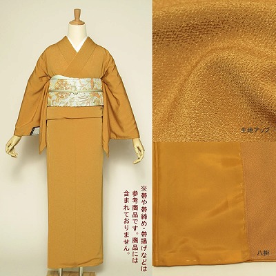 ポリエステル色無地M/L金茶縮緬ちりめん洗える仕立て上がり