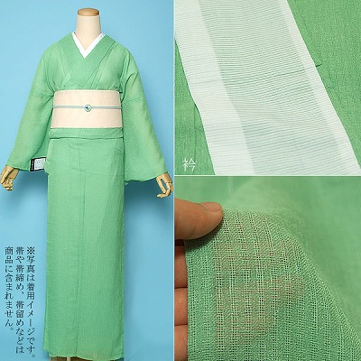 洗える夏の色無地 縦紗色無地「若緑色」<R>[ 色無地 ] [ 夏着物 ]洗える着物 紗 洗える色無地