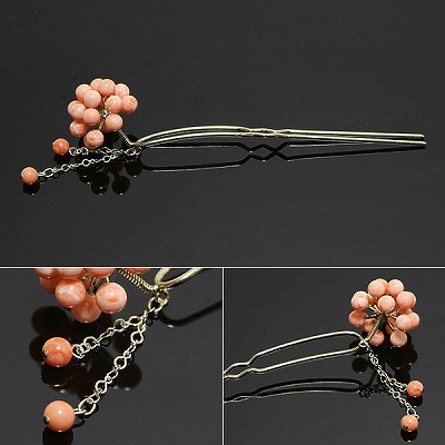 珊瑚風ビーズかんざし「シルバー×珊瑚風ビーズ」下がり飾りもゆらゆら華やかかんざし