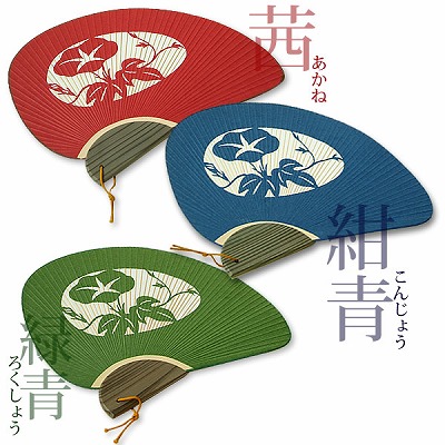 都うちわ「夏の大人浴衣に本格うちわ 千鳥型 朝顔」紺青