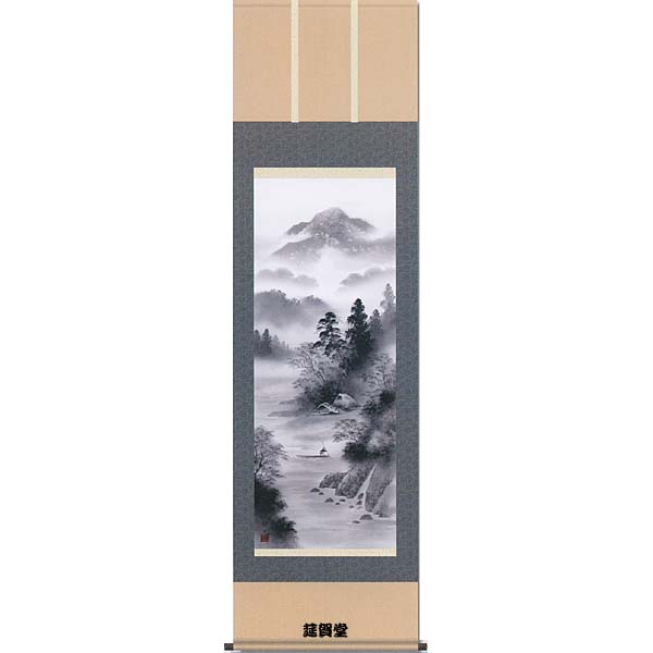 【印刷】掛軸 伊藤渓山筆「紫山憧憬(水墨山水)」