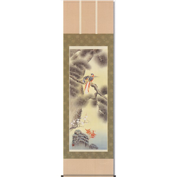 【印刷】掛軸 森山観月筆「松竹梅不老図」