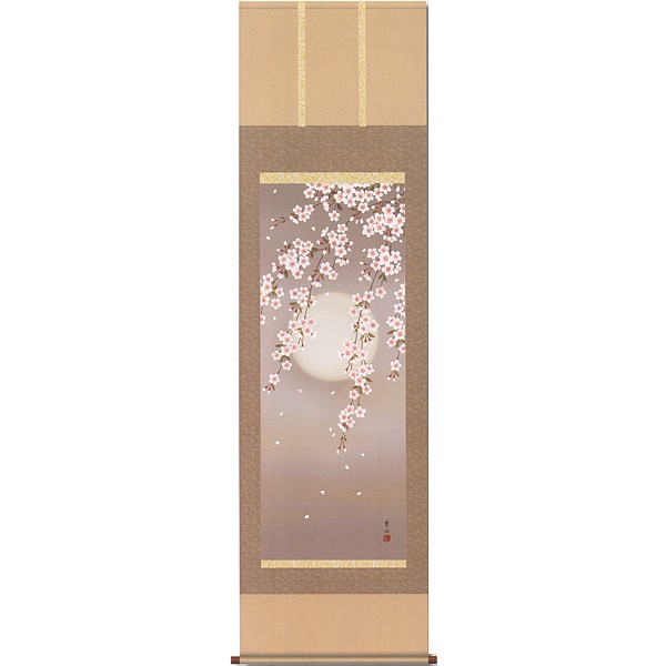 【印刷】掛軸 緒方葉水筆「夜桜」 季節掛(春)