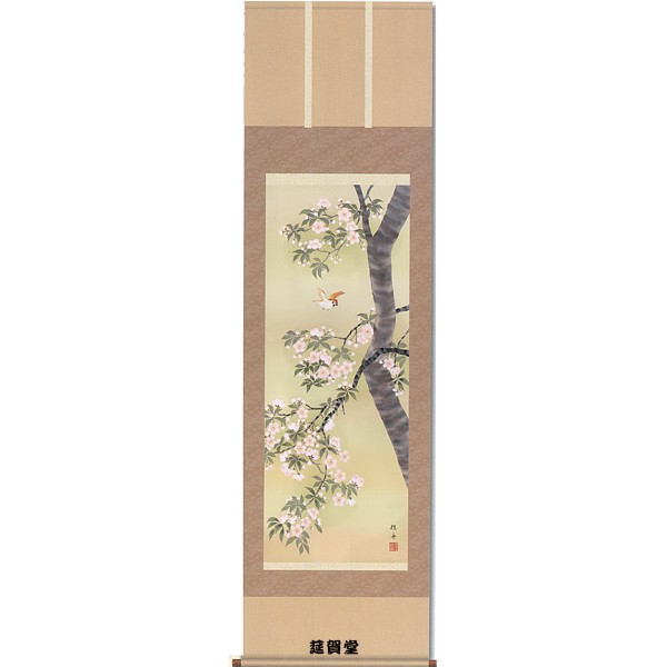 掛軸 長江桂舟筆「桜花に小鳥」 季節掛(春)