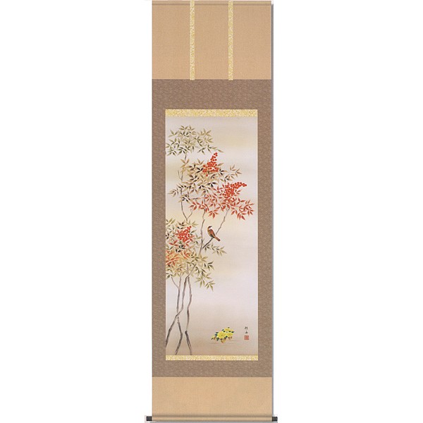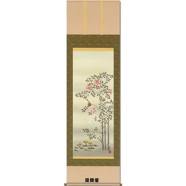 【印刷】掛軸 長江桂舟筆「南天福寿」 季節掛(冬)
