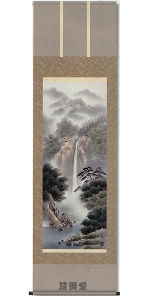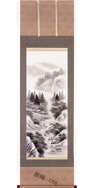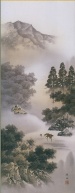 【印刷】掛軸 長江桂舟筆「閑雅悠景(彩色山水)」