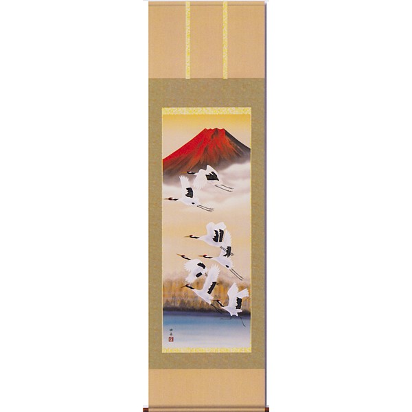 【印刷】掛軸 瀬田功舟筆「赤富士飛翔」