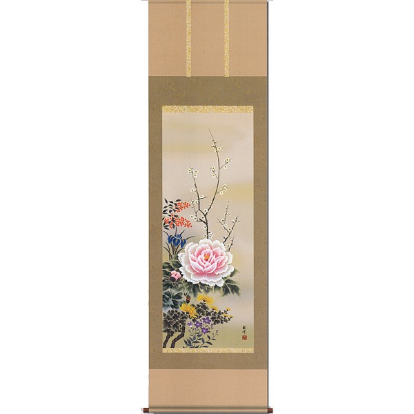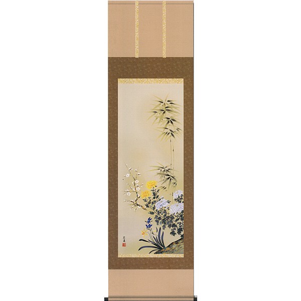 【印刷】掛軸 山村観峰筆「四季花」