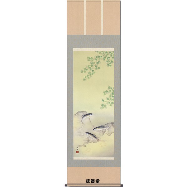 掛軸 依田流石筆「楓に鮎」 季節掛(夏)