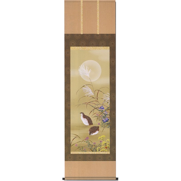 【印刷】掛軸 田村竹世筆「秋草に鶉」 季節掛(秋)