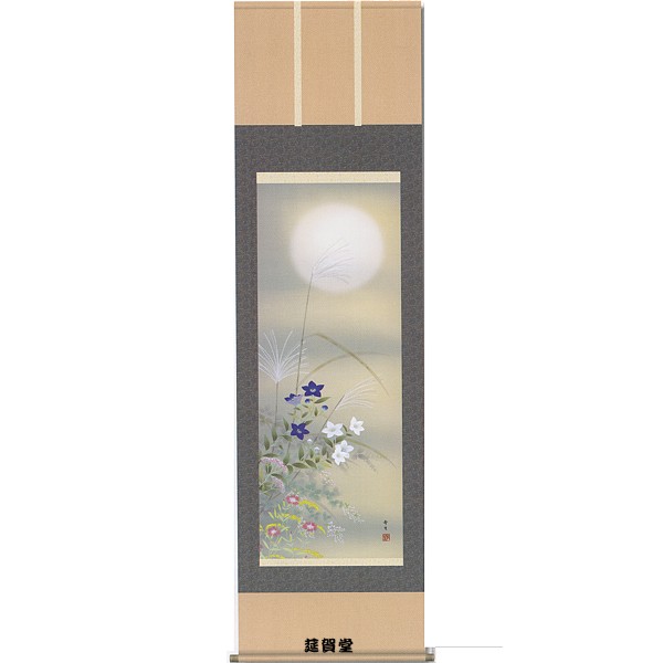 掛軸 北山歩生筆「月に秋草」 季節掛(秋)
