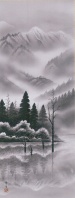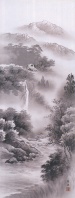 【印刷】掛軸 北山歩生筆「上高地(水墨山水)」