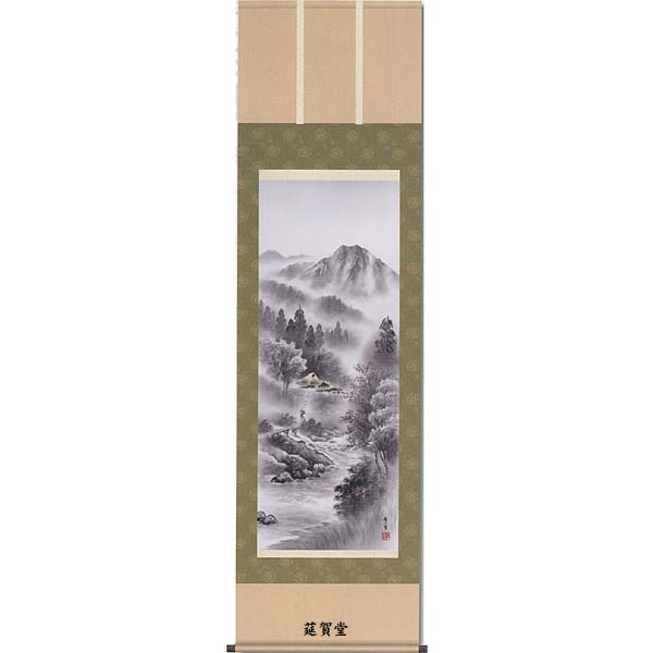 【印刷】掛軸 長江桂舟筆「悠景彩遷(水墨山水)」