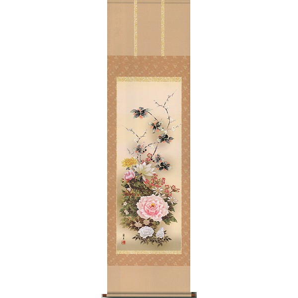 【印刷】掛軸 吉井蘭月筆「名花繚乱(四季草花)」