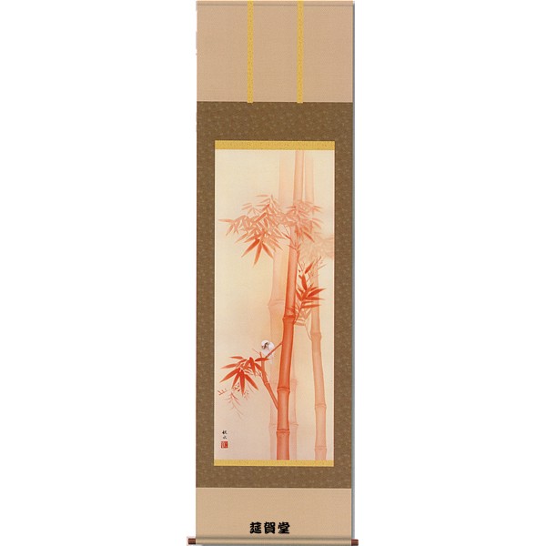掛軸 浮田秋水筆「朱竹」