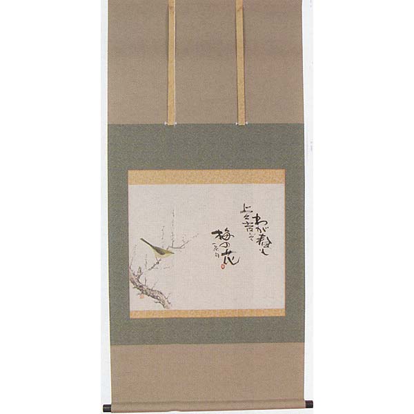 掛軸 石川夏舟筆「白梅に鶯」