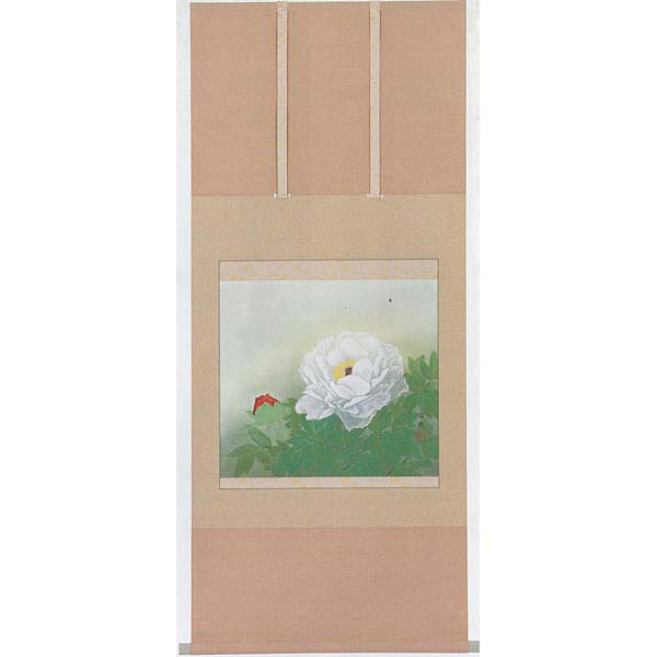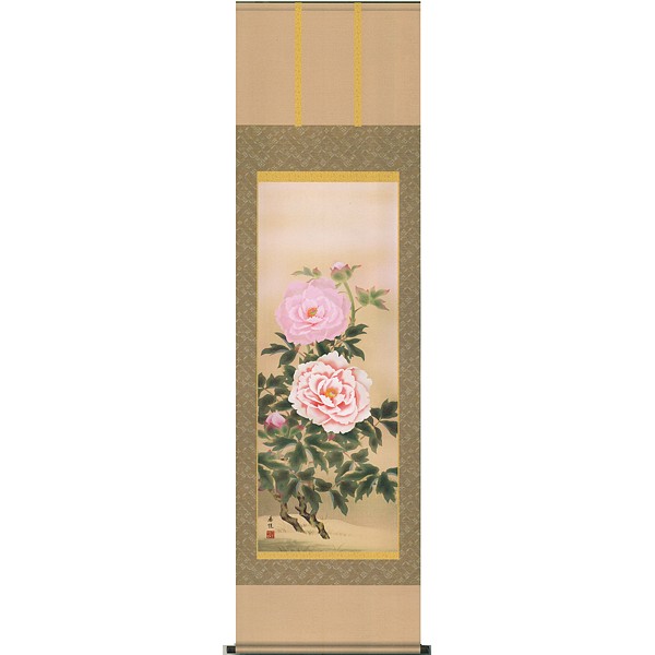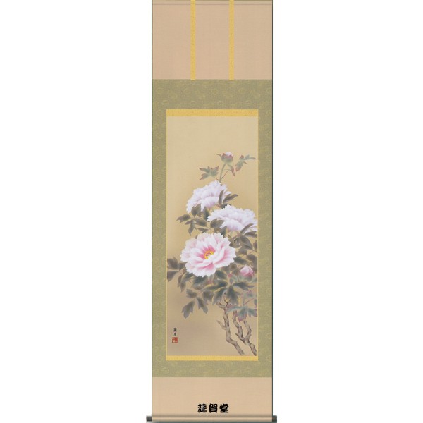 【印刷】掛軸 西尾香悦筆「富貴花(牡丹)」 季節掛(春)