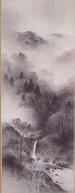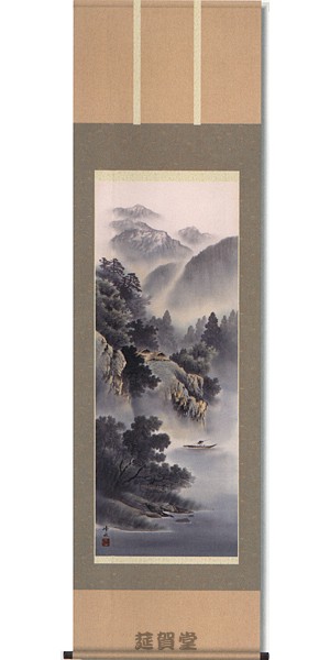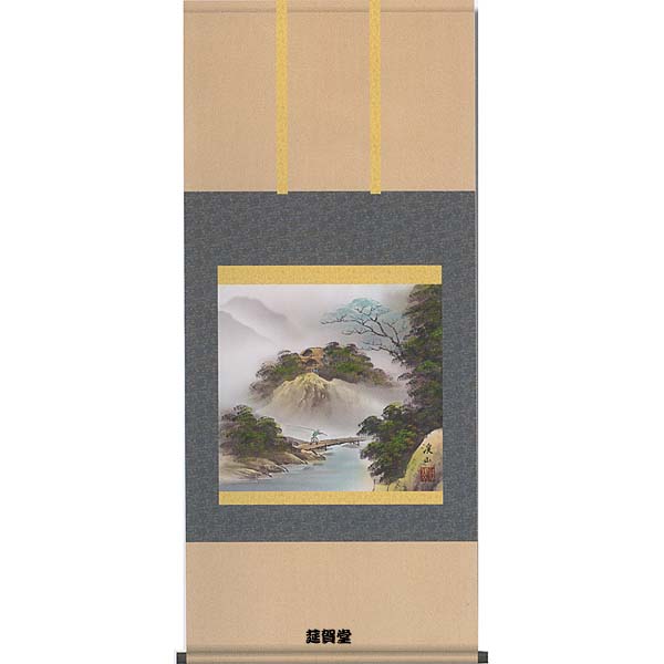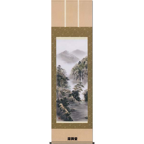 掛軸 伊藤渓山筆「薫風蒼水(彩色山水)」