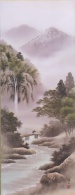 掛軸 佐伯峰水筆「山河望郷(彩色山水)」