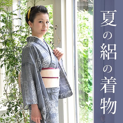 夏の絽の着物 夏着物 「紺×白 横段小紋柄」