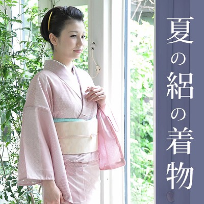 夏の絽の着物 夏着物 「退染め 麻の葉、絣風模様」