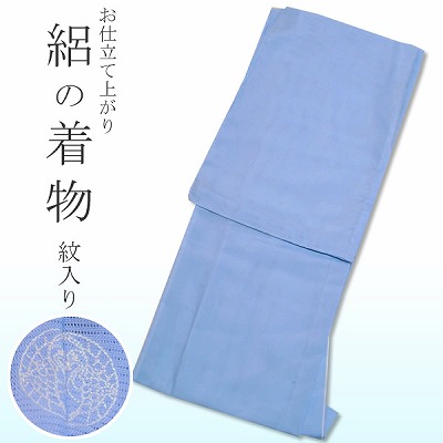 お仕立て上がり夏着物 駒絽の色無地「明るく柔らかな水色」向かい鶴一つ紋付き