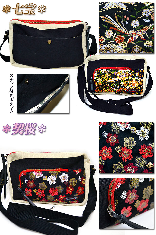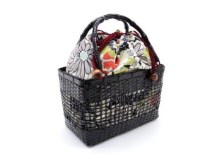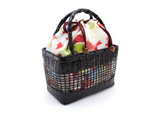 【竹籠巾着】お洒落な透かしの編みこみ 生地/黒系